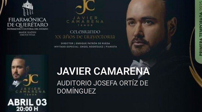 El Auditorio Josefa Ortiz de Domínguez se viste de gala para recibir, el próximo 3 de abril, a la Orquesta Filarmónica del Estado de Querétaro y al tenor, Javier Camarena, reconocido a nivel mundial por su virtuosismo y sensibilidad vocal, quien celebra 20 años de trayectoria artística. Celebra en