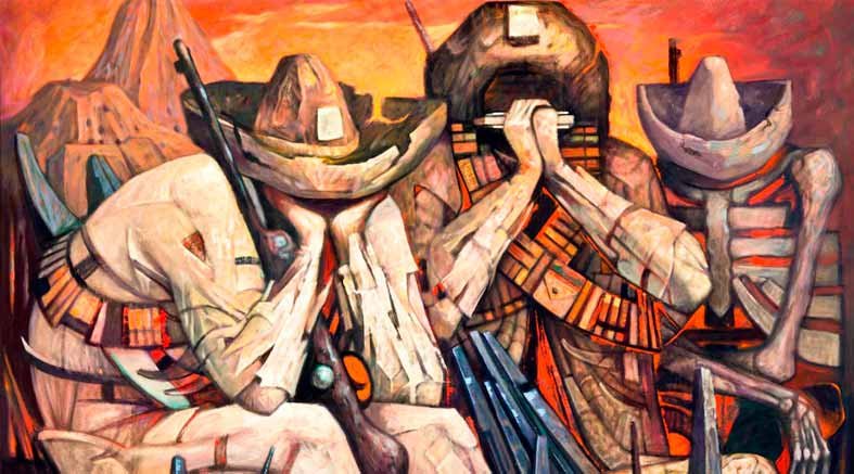 Entre las obras expuestas destaca el mural Liberación (1963), pieza central del evento que pertenece a la colección permanente del Palacio de Bellas Artes. También se incluyen bocetos de su proceso creativo y otras obras como Nuestros abuelos (1950) y Los Teocalis III (1979), que reflexionan sobre la identidad mexicana como resultado de la fusión de culturas mesoamericana y española.