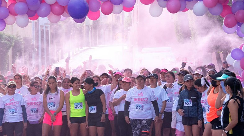 El banderazo de salida fue encabezado por la Auditora Superior Municipal, Leonor Hernández Montes, en representación del presidente municipal Rodrigo Monsalvo, y por el director general del INDECU, Ricardo Martínez Coronel. Durante el arranque, se activaron dispositivos que esparcieron polvos de colores, generando un ambiente de entusiasmo y celebración entre las participantes.
