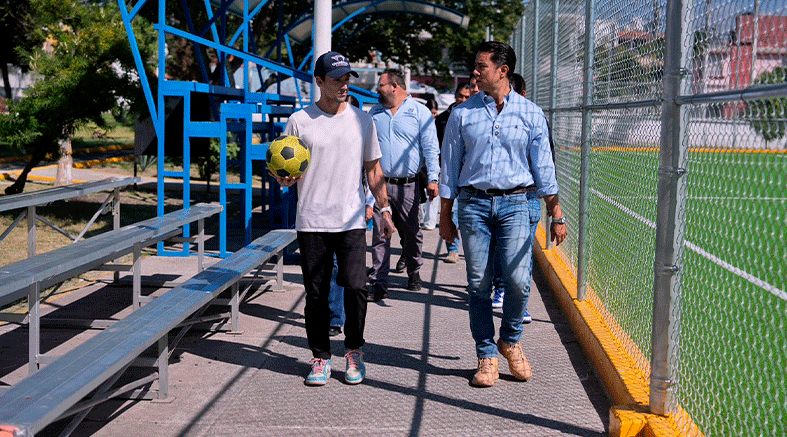 Entrega Felifer Macías rehabilitación de la cancha de futbol de la Unidad Deportiva Belén.