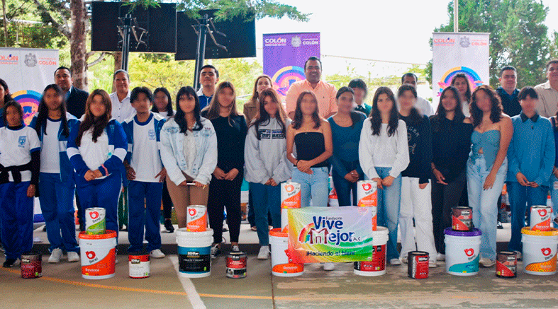 El Presidente Municipal, Gaspar Trueba Moncada , y la Fundación «Vive Mejor» entregaron 3,500 litros de pintura a 34 escuelas de 26 comunidades de Colón , con el objetivo de embellecer las instalaciones y mejorar el entorno de los planteles donde estudian más de 4,300 alumnos .