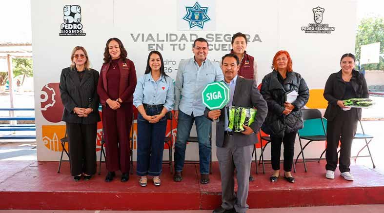 Pedro Escobedo, Qro.- Con el objetivo de garantizar entornos seguros para niñas, niños y jóvenes estudiantes del municipio, el Gobierno Municipal de Pedro Escobedo refrendó su compromiso con la seguridad escolar a través del programa “Vialidad segura en tu escuela”, una estrategia integral que hoy beneficia a 79 escuelas de educación básica, gracias al trabajo coordinado entre autoridades, directivos, docentes y madres y padres de familia.
