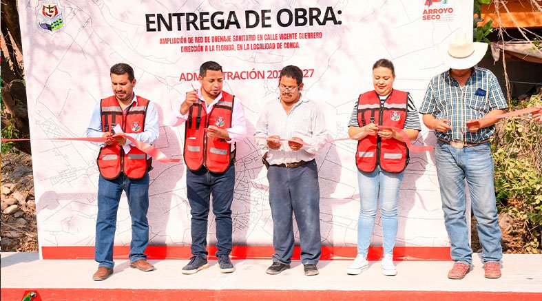 Con una inversión estimada de $906,966.66 pesos y en beneficio directo de 1,193 habitantes, el Presidente Municipal de Arroyo Seco, Lic. Fernando Sánchez Gil, realizó la entrega oficial de la obra de “Ampliación de la Red de Drenaje Sanitario en la Calle Vicente Guerrero, Dirección a La Florida, en la Localidad de Concá.” Drenaje Sanitario
