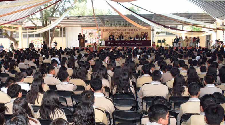 El Presidente Municipal de Colón, Gaspar Trueba Moncada, participó en la celebración del 50 aniversario de la Secundaria Técnica No. 7, donde dirigió un emotivo mensaje a docentes, alumnos, exalumnos y líderes de la comunidad educativa, con quienes develó la placa conmemorativa.
