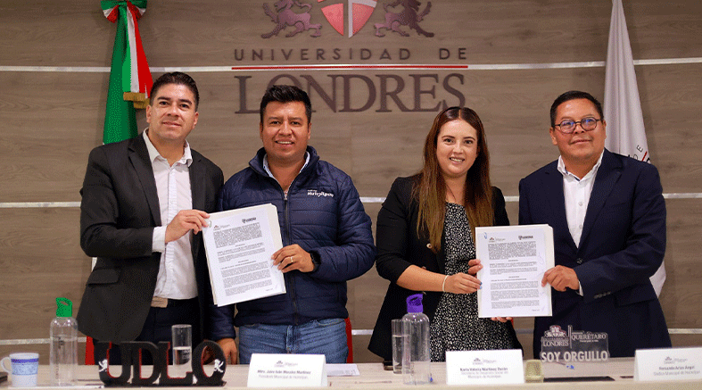 La Presidencia Municipal de Huimilpan, encabezada por el presidente municipal Jairo Morales, visitó las instalaciones de la Universidad de Londres, en la ciudad de Querétaro, para saludar y dialogar con las y los 18 jóvenes huimilpenses que actualmente cursan sus estudios profesionales con una beca del 100%, gracias al convenio gestionado entre esta casa de estudios y el municipio.