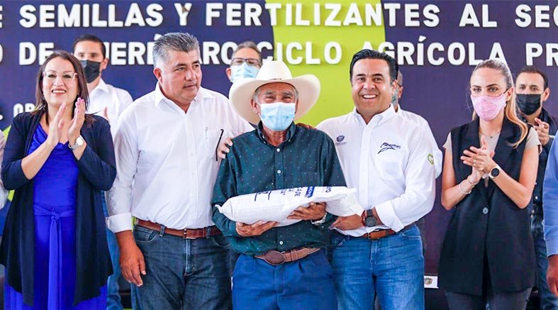 El Presidente Municipal de Querétaro, Luis Nava, encabezó la entrega de 15 toneladas de semillas y 98 toneladas de fertilizantes en apoyo al ciclo agrícola Primavera-Verano 2022 en el Municipio de Querétaro, lo que le convierte en el primer municipio del estado que establece un programa de rescate de la biodiversidad de maíces criollos y su producción bajo un enfoque sustentable. se