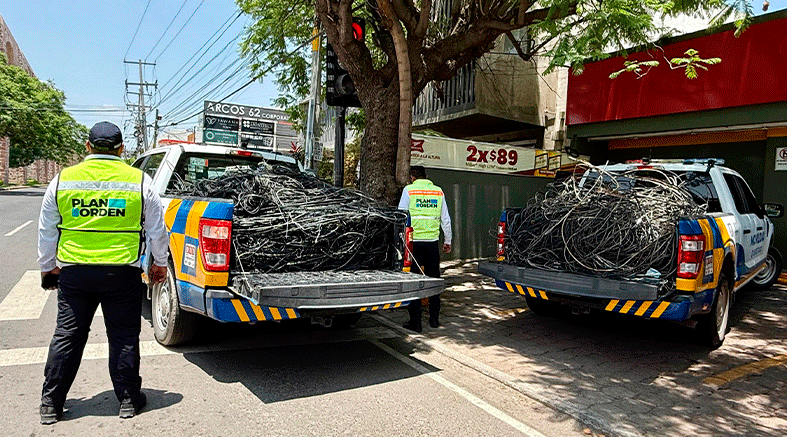 En el operativo más reciente, se retiraron 1.1 toneladas de cableado inutilizable. Esto sobre Av. de la Luz, en el tramo comprendido desde Prol. Bernardo Quintana hasta Av. de las Fuentes.