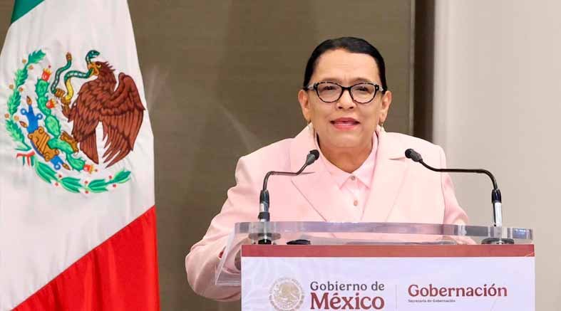 EFE Fotografía cedida por la Secretaría de Gobernación de México (Segob), de su titular Rosa Icela Rodríguez, durante una rueda de prensa este lunes en Ciudad de México (México). EFE/ Secretaría de Gobernación / SOLO USO EDITORIAL/NO VENTAS/SOLO DISPONIBLE PARA ILUSTRAR LA NOTICIA QUE ACOMPAÑA (CRÉDITO OBLIGATORIO)
