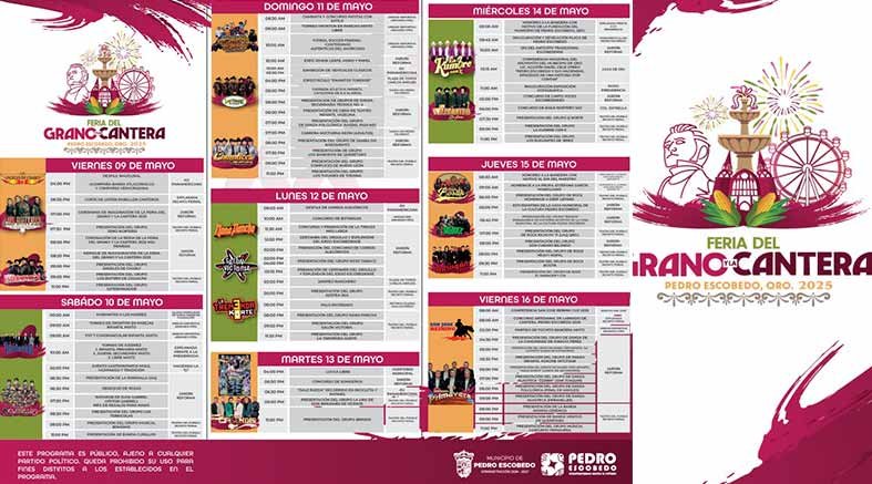 Del 9 al 18 de mayo, Pedro Escobedo se convertirá en punto de encuentro para familias locales y visitantes de todo Querétaro y México, con actividades artístico-culturales para todas las edades, exposiciones artesanales, muestras gastronómicas, eventos deportivos, religiosos y espectáculos musicales de primer nivel. Cada rincón del municipio vibrará con el espíritu de una comunidad que se reconoce en sus raíces y proyecta con orgullo su futuro.